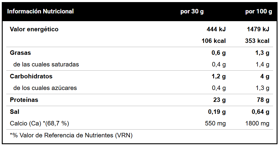 - Contiene caseína micelar (aislado de proteínas de leche MPI 90).