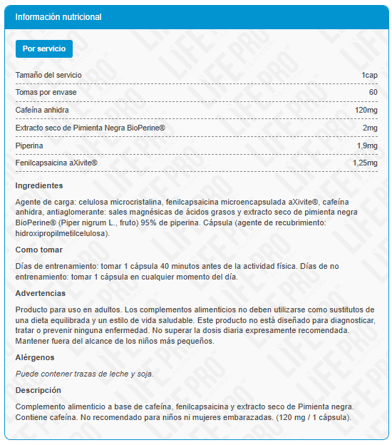 Preentreno y quemagrasas con cafeína, fenilcapsaicina y BioPerine®