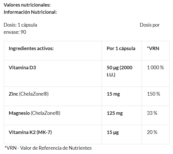 Amix™ D3-K2-MG-ZN es un complemento alimenticio en cápsulas que combina vitaminas D3 y K2 con minerales esenciales como Magnesio y Zinc en forma quelada (ChelaZone®). Esta fórmula "4 en 1" busca proporcionar soporte a nivel óseo, muscular y energético. -