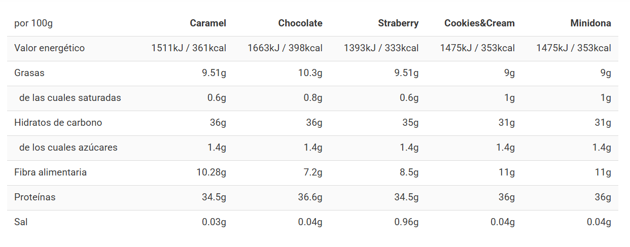 Nuevos cereales de desayuno 100% naturales con sabor a caramelo, chocolate, fresa, cookies&cream y minidona, altos en proteína y sin azúcares añadidos. Disfruta de estos auténticos super cereales con un increíble contenido de proteínas de 34,5g/36,6g/36g* y con sólo 1,4g* de azúcar y revoluciona tu desayuno. ¡Descubre el poder de comenzar el día con una sonrisa y energía natural!